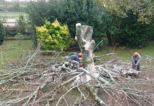 Lorsqu’un arbre présente un risque ou une maladie, nous procédons à un abattage par démontage précis, souvent assisté d’une nacelle pour les zones délicates. Nous proposons aussi le haubanage, qui permet de stabiliser les branches fragiles, ainsi que le rognage de souche après coupe.